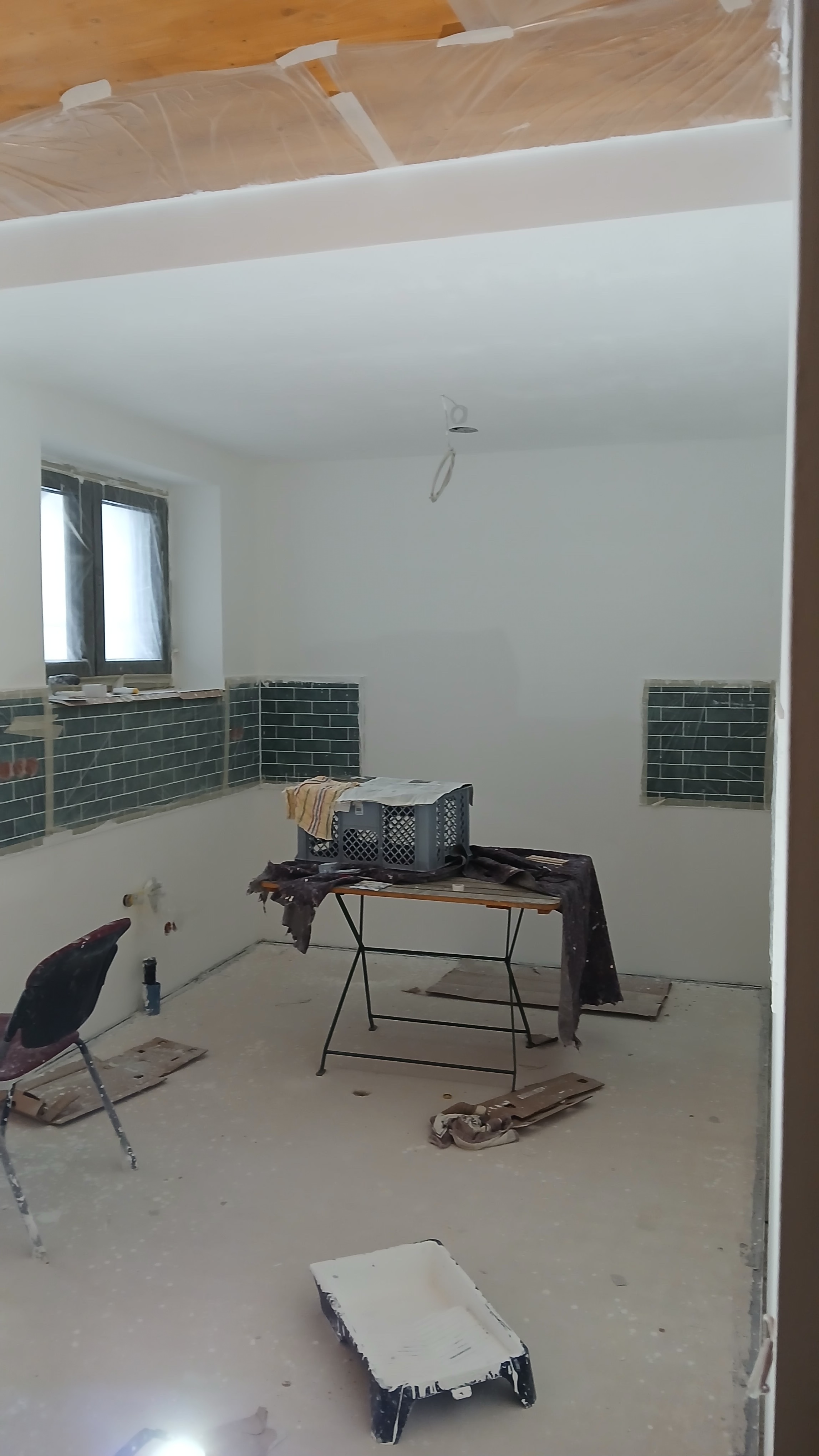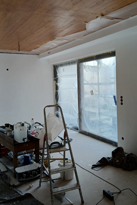 Im Innenausbau des Projekts schreiten die letzten Arbeiten voran: Maler, Bodenleger und verleihen den Räumen ihren endgültigen Charakter.